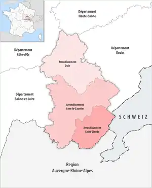 | Arrondissement de Lons-le-Saunier | 392 | 2 271,90 | 104 178 (2021) | 46 | |