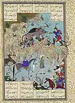 La peinture miniature persane se développait sur le territoire de l’Azerbaïdjan au Moyen Âge. Les manuscrits avec des peintures miniatures de personnes, d'animaux et de paysages étaient populaires à cette époque. Les œuvres poétiques de Ferdowsi, Nizami, Saadi, Hafez, Djami, Navoï, Amir Khusrau et d'autres occupent une place importante dans la créativité des artistes miniatures persans. Au milieu du XVe siècle, un nouveau style - le «style turkmène» - de diffusion miniature sur les territoires des États de Kara Koyunlu et d'Ag Goyunlu a été mis au point. De telles miniatures de ce style ont été réalisées à Tabriz et dans d'autres villes situées sur le territoire de l'Azerbaïdjan moderne. Chamakhi - la capitale du gouvernement des Chirvanshahs en fait partie. Des traces de ce style ancien créé par des artistes ayant travaillé dans les ateliers de Rachidaddin au début du XIVe siècle peuvent être observées dans des miniatures créées par Abdul-Bagi Bakouvi, artiste bakou du XVe siècle. Les illustrations pour «Anthologie de la poésie orientale» ou «Anthologie de Chamakhi» de 1468 et conservées au British Museum de Londres sont les meilleures miniatures créées par l'artiste de Chamakhi et Bakou. Les portraits à une figure et à deux figures peints par Abdulbagi Bakouvi (« Stableman » et « Deux amîrs ») et conservés au musée Topkapi, à Istanbul, appartiennent à l'art miniature de Bakou. L'influence de la peinture extrême-orientale se ressent dans la créativité de nombreux artistes miniatures de cette époque[1].