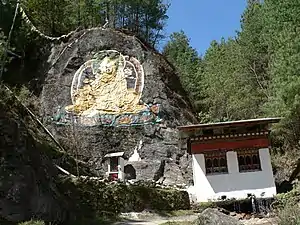 Les principales écoles du bouddhisme au Bhoutan sont le Drukpa et le nyingma ou nyingmapa constituant deux courants de pensée. Le premier est une branche de la Kagyu ou Kagyupa l'une des quatre grandes traditions contemporaines du bouddhisme tibétain, connu par des peintures documentant la lignée des maîtres bouddhistes et les 70 Je Khenpo (dirigeants de l'établissement monastique du Bhoutan). L'école Nyingma est connue pour les images de Padmasambhava (maître bouddhiste du VIIIe siècle), crédité de l'introduction du bouddhisme au Bhoutan. Selon la légende, Padmasambhava cacha des trésors sacrés pour les maîtres bouddhistes futurs, en particulier Pema Lingpa. Ces « découvreur de trésors » (Tertons en tibétain) sont également des sujets fréquents représentés dans l'art Nyingma.
