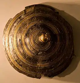 On sait également qu'il existe des boucliers d'Urartu en or qui n'ont pas été conservé. En Assyrie, le tsar Sargon II, décrivant la richesse des objets du pillage de Musasir, dit qu'il comprenait six boucliers en or d'Urartu qui pesaient chacun 6,5 kg.