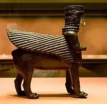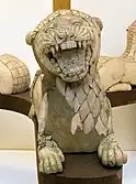 | Figurines en bronze, parties du trône conservé à Saint-Pétersbourg au musée de l'Ermitage, Russie. Les figurines en bronze ont conservé des traces de dorure. Les visages des bêtes sauvages et de la divinité sa trouvant à droite étaient en pierre, probablement incrustés de pierres précieuses, de sorte que tous les visages ont été brisés et non conservés. | ||||
