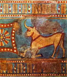L'art monumental d'Urartu est représenté aussi par des peintures murales colorées, miraculeusement conservées dans les ruines de la citadelle d'Erebouni. Bien que des peintures de ce genre aient été largement répandues en Mésopotamie et sans doute, de là se soient étendues en Urartu, c'est à Erebouni qu'elles sont le mieux conservées par rapport aux autres dans les villes antiques du Proche-Orient. Cela fait d'elles un monument unique de l'art de l'orient Ancien[16] Erebouni, à la différence de beaucoup de cités d'Urartu n' pas été incendiée pendant une guerre, mais a été abandonnée sans combattre , ce qui a permis de sauver des peintures uniques[17],[18]. Certaines peintures murales d'Erebouni ont été exposées à Erevan au Musée Erebouni et à Moscou au Musée des Beaux-Arts Pouchkine.