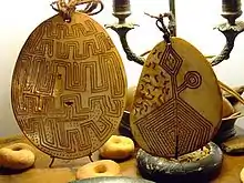 Le plus souvent qualifiés de "Lonka-Lonka", les larges coquillages en nacre sont gravés de motifs figuratifs ou abstraits. Ils peuvent suggérer dans certains cas, les itinéraires sacrés des hommes-Tingari au cœur du désert, les zigzags du tonnerre et de la pluie, le Rêve de la baleine Min-Nimb, les mouvements de l'eau, les effets des marées, des traces laissées sur le sable à basse eau ou la symbolique des mouvements d'un serpent sur le sol. L'usage du silex, puis des outils en métaux avec l'arrivée des Occidentaux sur le continent, a permis d'affiner les motifs portés sur la nacre. Ces objets, issus de la région du Kimberley près de la côte à Broome, furent exportés sur l'ensemble du continent au fil des échanges commerciaux et des pistes chantées. Les coquillages étaient portés au niveau du cou ou comme cache-sexe, l'ensemble ajusté sur le corps à l'aide d'une cordelette tressée en cheveux.