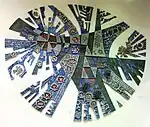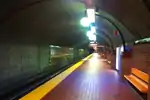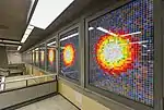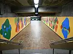 | Peel | Verte | Mousseau, Jean-Paul | Cercles | 1966 | Céramique | Des lunes composées de lamelles de céramique vernissée et vivement colorées sont disposées partout dans la station, tant sur les murs que sur le sol. | ![]() |
