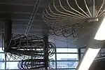 | Proulx, Yvon | Dessins suspendus | 2009 | Acier inoxydable | Trois structures d'acier suspendues au plafond, en forme de dessins libres évoquant des rosaces et des plantes. | ![]() | ||