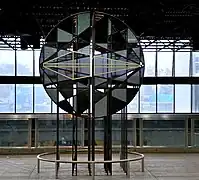 | Vendôme | Orange | Ferron, Marcelle | Verrière et sculpture | 1981 | Verre antique, acier inoxydable | L'œuvre combine une sculpture qui se déploie en spirale et reflète la lumière et les couleurs de la verrière située derrière. | ![]() |