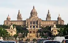 L'Exposition internationale de 1929 fut un jalon important. Elle impliqua l'urbanisation des alentours de la colline de Montjuïc, selon un projet de Josep Puig i Cadafalch. On construisit pour l'exposition des édifices comme le Palais national de Montjuïc (l'actuel MNAC) et le Stade olympique Lluís-Companys, de même que la Fontaine magique de Carles Buïgas, le Théâtre grec et le Poble Espanyol ; il convient également de mentionner le Pavillon allemand, œuvre de Ludwig Mies van der Rohe, fleuron du rationalisme[93].