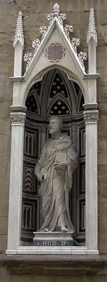 - Saint Pierre représenté par une statue datant de 1415 de Bernardo Ciuffagni sur une esquisse de Donatello dans une des niches (tabernacoli) de l'église d'Orsanmichele.