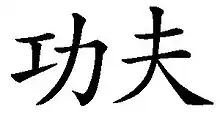 Ce terme, transcription de 功夫 (gung1fu1 en jyutping cantonais, gōngfu en mandarin ) a été introduit en Europe dans les années 1970 pour désigner les films chinois d'arts martiaux. C'est la lecture cantonaise de ce mot, Hong Kong ayant été la source majeure de films chinois dans ces années-là. Les termes « kung 功 » et « fu 夫 » traduits littéralement et séparément ont une tout autre signification que « arts martiaux » chinois :