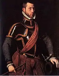 En 1568, le roi Philippe II d'Espagne charge le duc Vespasien Gonzague de construire des fortifications à Carthagène, qui en était dégarnie jusqu'alors. Vespasiano I Gonzaga fit construire une muraille dans le versant le nord du mont grâce aux schémas de l'ingénieur militaire Juan Bautista Antonelli, qui l'édifie de façon que la muraille traverse le mont dans le sens est-ouest. L'utilisation de matériaux de faible qualité provoquent la destruction des fortifications, tandis que le duc Vespasiano I Gonzaga récupéra les sculptures romaines qui furent découvertes durant les travaux.