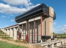 L'ascenseur vu de face avec son bief d'attente.