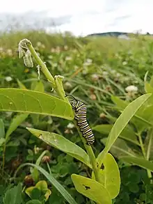 Les dommages causés par les chenilles de Monarque modulent les interactions d’Asclepias syriaca avec d’autres espèces interagissant avec celle-ci[18]. En effet, en mangeant les feuilles, les chenilles de Monarque augmentent la fréquentation par les pucerons et la présence des pucerons induira la présence de fourmis prédatrices (Formica podzolica) associées à Asclepias syriaca qui consomment le miellat des pucerons[18].