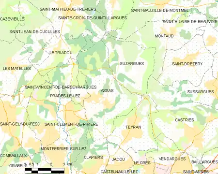 Assas est située à quelques kilomètres au nord de Montpellier.