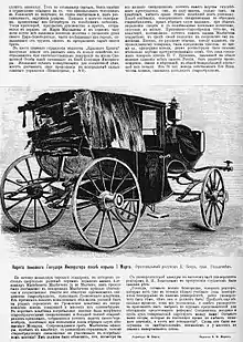 Le tsar voyageait à la fois vers et depuis le Manège dans une voiture fermée à deux places tirée par une paire de chevaux. Il était accompagné de cinq cosaques à cheval et de Frank (Franciszek) Joseph Jackowski, un noble polonais, avec un sixième cosaque assis à la gauche du cocher. La voiture de l'empereur était suivie de trois traîneaux transportant, entre autres, le chef de la police, le colonel Dvorzhitzky et deux officiers de la gendarmerie.