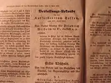 Hormis l'échec du parlement d'État de 1815/16, il n'y avait pas d'organe représentatif dans l'électorat restauré de Hesse et pas de constitution, bien que l'article 13 de l'Acte confédéral allemand exige l'établissement d'une constitution d'État. Aussi bien le prince électeur Guillaume Ier que son successeur Guillaume II rejettent le constitutionnalisme. Dans le contexte de la révolution de juillet 1830, des troubles éclatent en automne de cette année-là en électorat de Hesse. Des problèmes économiques et sociaux y jouent un rôle, en plus d'un mécontentement politique existant depuis longtemps. La relation inappropriée du prince électeur avec sa maîtresse contribue également aux protestations. Les troubles prennent une telle ampleur que la Confédération germanique planifie une intervention fédérale. Le prince électeur se voit contraint de convoquer une assemblée et d'accorder une constitution. Une assemblée constituante des États se réunit le 16 octobre 1830. La commission constitutionnelle est présidée par Sylvester Jordan (de). La nouvelle constitution entre en vigueur le 5 janvier 1831.