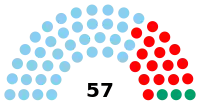 - Majorité : 32 élus sur 57 mais divisés entre :
