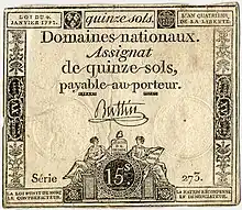L’assignat est une monnaie fiduciaire mise en place sous la Révolution française.