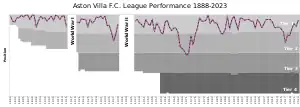 Après la fin la saison 2011-2012, Aston Villa a disputé 105 saisons dans l'élite du football anglais. Le seul club à être resté plus longtemps est Everton, avec 114 saisons, faisant des confrontations entre les deux clubs les matchs les plus joués du championnat[27]. Ils sont cinquièmes dans le classement du championnat d'Angleterre toutes saisons confondues, et ont le sixième plus grand total de titres avec 22 victoires[28].