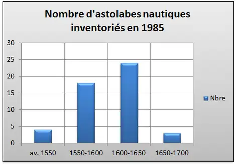 Dans l'inventaire des astrolabes nautiques existants donné par Alan Stimson, il n'y a que trois instruments dans la période 1650-1700. Ce qui montre son obsolescence dès le milieu du XVIIe siècle.
