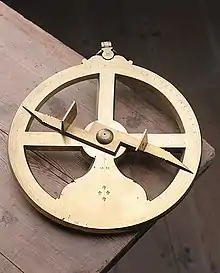- un disque-mère dit « armille méridienne » comportant une double graduation sur un des quadrants supérieurs. On peut y lire directement la hauteur ou la distance zénithale ;