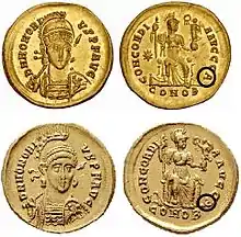 Les techniques d’alliage du cuivre et de l’argent sont parfaitement maîtrisées. Les ateliers savent frapper des flans mêlant du cuivre en partie durci, et de l’argent encore fluide pour obtenir des pièces à la surface argentée[10]. Au IVe siècle la production des solidi est soigneusement contrôlée avant l’émission, et atteint une précision de poids de chaque pièce au 1/10 de gramme.