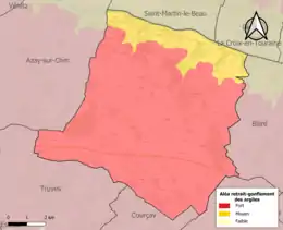 Le retrait-gonflement des sols argileux est susceptible d'engendrer des dommages importants aux bâtiments en cas d’alternance de périodes de sécheresse et de pluie. La totalité de la commune est en aléa moyen ou fort (90,2 % au niveau départemental et 48,5 % au niveau national). Sur les 1 134 bâtiments dénombrés sur la commune en 2019, 1134 sont en aléa moyen ou fort, soit 100 %, à comparer aux 91 % au niveau départemental et 54 % au niveau national. Une cartographie de l'exposition du territoire national au retrait gonflement des sols argileux est disponible sur le site du BRGM[27],[28].