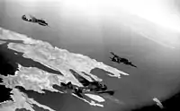 Les forces allemandes comprennent des Heinkel He 111 équipés de torpilles F5B, des Dornier Do 217 équipés de missiles Henschel Hs 293 et des Junkers Ju 88. Ils se séparent en petits groupes et attaquent à basse altitude, à environ 300 m. Initialement, les Américains envoient des signaux amis ou ennemis aux aéronefs approchants, mais lorsqu'un des avions est identifié comme allemand, Hartman en est informé et ordonne aux escortes d'ouvrir le feu. Lorsque les avions allemands arrivent à portée, les escortes et les transports font feu vers le ciel avec une grêle massive de mitrailleuses, de tirs anti-aériens et navals. Quelques secondes plus tard, les Allemands lancent leurs missiles et leurs torpilles. La bataille dure moins de 30 minutes, mais pendant ce temps des milliers de livres de munitions sont gaspillés. L'USS Beatty, commandé par le commandant William Outerson, observe d'abord des tirs de mitrailleuses à 18 h 03 et capte cinq avions entrants suivis d'une explosion de bombe à 18 h 04. À 18 h 05, il ouvre le feu sur deux autres avions Ju 88 à 15 000 m de distance, qui tentent de se faire passer pour des avions alliés.
