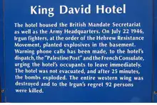 | Attentat de l'hôtel King David | ||