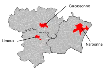 L'Aude (prononcé /od/[1]) est un département français de la région Occitanie, qui se situe dans le Sud de la France. Sa préfecture est Carcassonne, ville médiévale fortifiée de 46 673 habitants, mais sa plus grande ville est Narbonne, qui a 56 123 habitants.