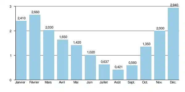 Son débit a été observé durant une période de 43 ans (1973-2015), à Silley-Bléfond, localité assez proche de son confluent avec le Doubs, à 300 m d'altitude[3]. Le bassin versant de la rivière y est de 167 km2 soit plus ou moins 90 % de sa totalité.