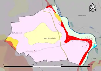 La commune d'Augerville-la-Rivière est vulnérable à différents aléas naturels : inondations (par débordement de l'Essonne), climatiques (hiver exceptionnel ou canicule), mouvements de terrains ou sismique (sismicité très faible)[39]. Entre 1989 et 2019, deux arrêtés ministériels ayant porté reconnaissance de catastrophe naturelle ont été pris pour le territoire de la commune pour des inondations et coulées de boues[40].