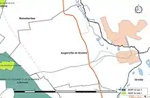 Carte de la commune d'Augerville-la-Rivière et des communes limitrophes.