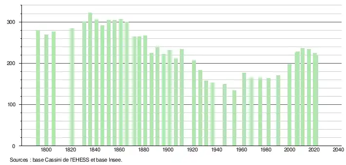220 hab. (2021 en diminution de 5,98 % par rapport à 2015)