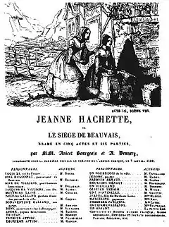 - Périnet Leclerc, ou Paris en 1418, drame en prose, en 5 actes, 1832. En collaboration avec Lockroy. D'après Scènes historiques de Dumas.