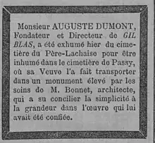 (Wikisource) - Louis Ulbach, « Auguste Dumont », Gil Blas, , p. 1 (lire en ligne, consulté le ).