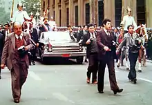 Le général Pinochet devient à l'époque « le héros des milieux fascistes européens »[55]. Ainsi, les néo-fascistes italiens sont-ils employés dans des opérations dans le cadre du plan Condor[56],[57]. Au Chili, la colonie Dignidad, dirigée par le nazi Paul Schäfer, sert de centre de torture pour les militaires et se voit accorder l'immunité pour toutes les exactions commises entre ses murs[58],[59],[60].