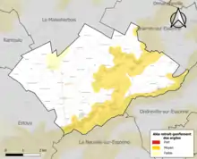 Par ailleurs, le sol du territoire communal peut faire l'objet de mouvements de terrain liés à la sécheresse. Le phénomène de retrait-gonflement des argiles est la conséquence d'un changement d'humidité des sols argileux. Les argiles sont capables de fixer l'eau disponible mais aussi de la perdre en se rétractant en cas de sécheresse[48]. Ce phénomène peut provoquer des dégâts très importants sur les constructions (fissures, déformations des ouvertures) pouvant rendre inhabitables certains locaux. Celui-ci a particulièrement affecté le Loiret après la canicule de l'été 2003. Une grande partie du territoire de la commune est soumis à un aléa « moyen » face à ce risque, selon l'échelle définie par le Bureau de recherches géologiques et minières (BRGM)[49].