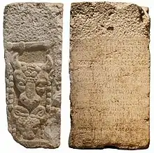 La face principale porte quatre lignes de texte, et présentait vraisemblablement une tête de taureau qui a été totalement martelée.