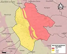 La commune est vulnérable au risque de mouvements de terrains constitué principalement du retrait-gonflement des sols argileux[32]. Cet aléa est susceptible d'engendrer des dommages importants aux bâtiments en cas d’alternance de périodes de sécheresse et de pluie. La totalité de la commune est en aléa moyen ou fort (88,8 % au niveau départemental et 48,5 % au niveau national). Sur les 3 296 bâtiments dénombrés sur la commune en 2019, 3 296 sont en aléa moyen ou fort, soit 100 %, à comparer aux 98 % au niveau départemental et 54 % au niveau national. Une cartographie de l'exposition du territoire national au retrait gonflement des sols argileux est disponible sur le site du BRGM[33],[Carte 3].