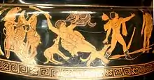 Illustration de la mort d'Actéon. Vase exposé au département des antiquités grecques, étrusques et romaines du Musée du Louvre, Paris, France.