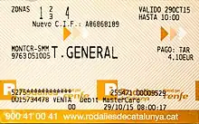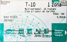 Le guichet automatique gère le système d’intégration tarifaire créé en 2001. Grâce à ce ticket, le transport public peut être utilisé de différentes manières dans la région métropolitaine des sociétés qui font partie et peuvent effectuer différents types de correspondance entre ces moyens de transport sans avoir à payer pour un délai qui dépend des zones traversées (bien que le billet doit être validé à chaque correspondance) . Toutefois, le simple billet est exclu de la possibilité d'effectuer un transport combiné. Ces entreprises fournissent un ou plusieurs services de transport, parmi lesquels les entreprises suivantes sont remarquables pour leur grande couverture du territoire, bien qu'il existe des dizaines d'entreprises, en particulier des opérateurs de bus dans les zones locales ou sous-communautaires qui peuvent être très importants. Au-delà de la municipalité de Barcelone[7]: