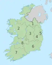 - Border Regional Authority (comtés de Cavan, Donegal, Leitrim, Louth, Monaghan et Sligo)