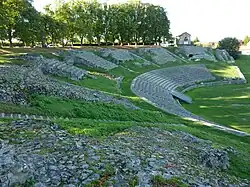 ![]() ![]() ![]() ![]() ![]() ![]() ![]() De haut en bas, de gauche à droite : la cathédrale Saint-Lazare, les remparts gallo-romains, la porte d'Arroux, le temple de Janus, la tour des Ursulines, la pyramide de Couhard et une vue panoramique de la ville prise depuis le site de la Croix de la Libération. |