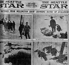 - Voir : The Spokane Press du 5 mars 1910, p. 1 et 2 et Rogers Pass avalanche (en).