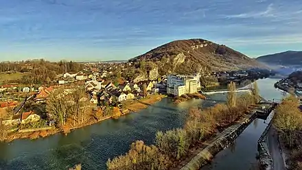 Vue d'Avanne depuis la rive gauche du Doubs. | |||||