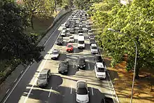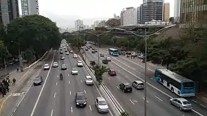 En 2010, l'avenue était la deuxième en nombre d'accidents de motos à São Paulo, derrière Marginal Tietê, avec 70% des accidents de la route impliquant des motos[25]. En , un test a été réalisé, pendant une semaine entre 10 h et 16 h, d'une voie réservée aux motos, similaire à celle qui avait été mise en place des mois auparavant sur l'avenue Sumaré, avec des cônes séparant la voie de gauche à cet effet[26]. Cependant, après seulement deux jours, la congestion sur la route avait doublé, et la fin des essais a été décrétée après le troisième jour[27]. Le maire Gilberto Kassab a déclaré que, bien que l'expérience ait été « bonne », « l'intensité du trafic a dépassé les attentes »[27].