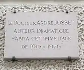 - No 5 : le médecin et auteur dramatique André Josset (1887-1976) y a habité pendant plus de 60 ans ; une plaque lui rend hommage.