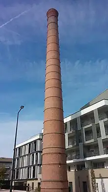 Cette cheminée est le dernier témoin de l'usine textile construite en 1924 par la Bonneterie de la Garonne, qui fusionne en 1931 avec le Tricotage de l'Ariège fondé par José Soler-Puig. L'activité industrielle s'arrête cependant dès les années 1970, les bâtiments accueillant de nouvelles activités. En 2003, ils sont vendus et démolis au profit de la réalisation d'un vaste programme immobilier (actuels no 116 à 140). La cheminée est construite par l'entreprise toulousaine E. Laurent. Elle était liée à des chaudières à vapeur nécessaires au traitement de la laine. Elle s'élève le long de la rue Anne-Frank (actuel no 4)[9].