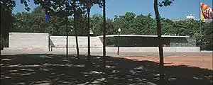 Le célèbre Pavillon allemand de Barcelone, dessiné par les architectes allemands Ludwig Mies van der Rohe et Lilly Reich, est situé sur l'avenue, sur le côté ouest[3].