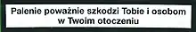 - « Kouření vážně škodí Vám i lidem ve Vašem okolí »